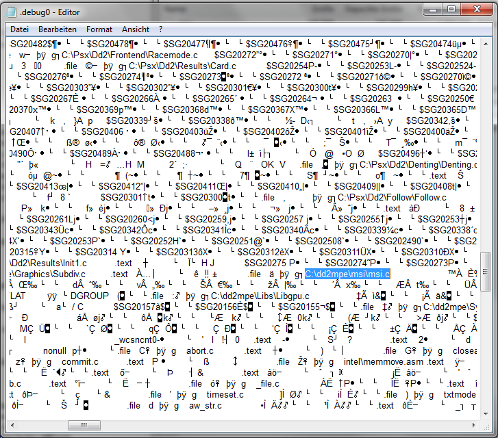 I have checked the CRC checksums of the files. The four files in the PS1 Version, has different checksums. The EXE files from the Matrox version, are all the same. And yes, on the Matrox version they are Windows executables, but it looks like that they're PS1 EXE files. I have opened one and it says, that it needed the "MSI95.DLL" file. Then i have copied it from the Matrox DD2 Root folder into the extract "DIRINFO" Rootfolder. But it closes directly, then i tried to copy the EXE files into the DD2 Root folder, near to the DD2.EXE and the same happened. I have opened one EXE file with 7-Zip and found out that, there are ".debug0, .debug1, .debug2, .debug3" files in it.