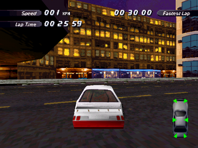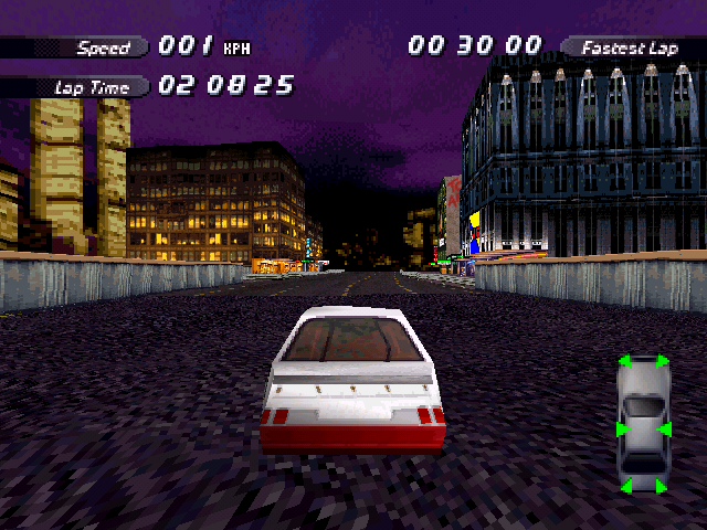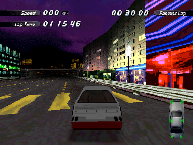 | In the PS1 version has the first building a Purple/Blue and Red colored texture, |