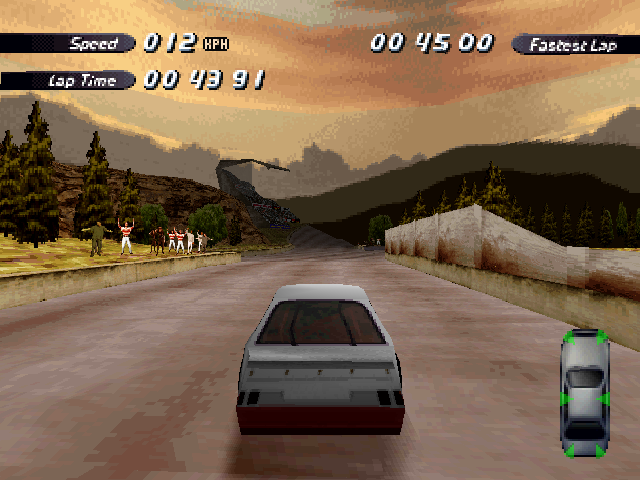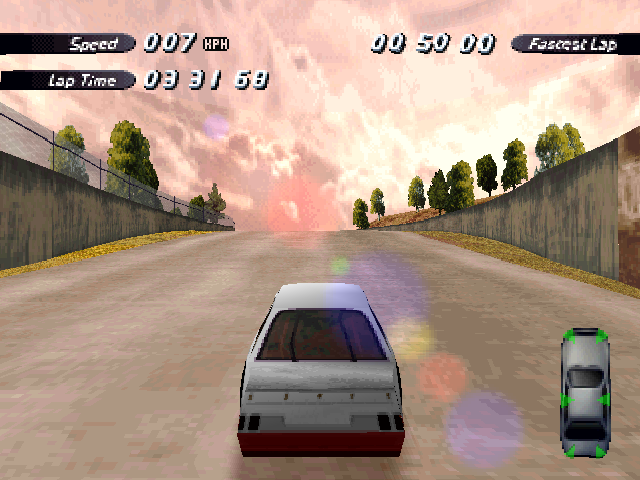 | The PS1 version has the a very pretty sun flare effect, you can see it also in other tracks. |